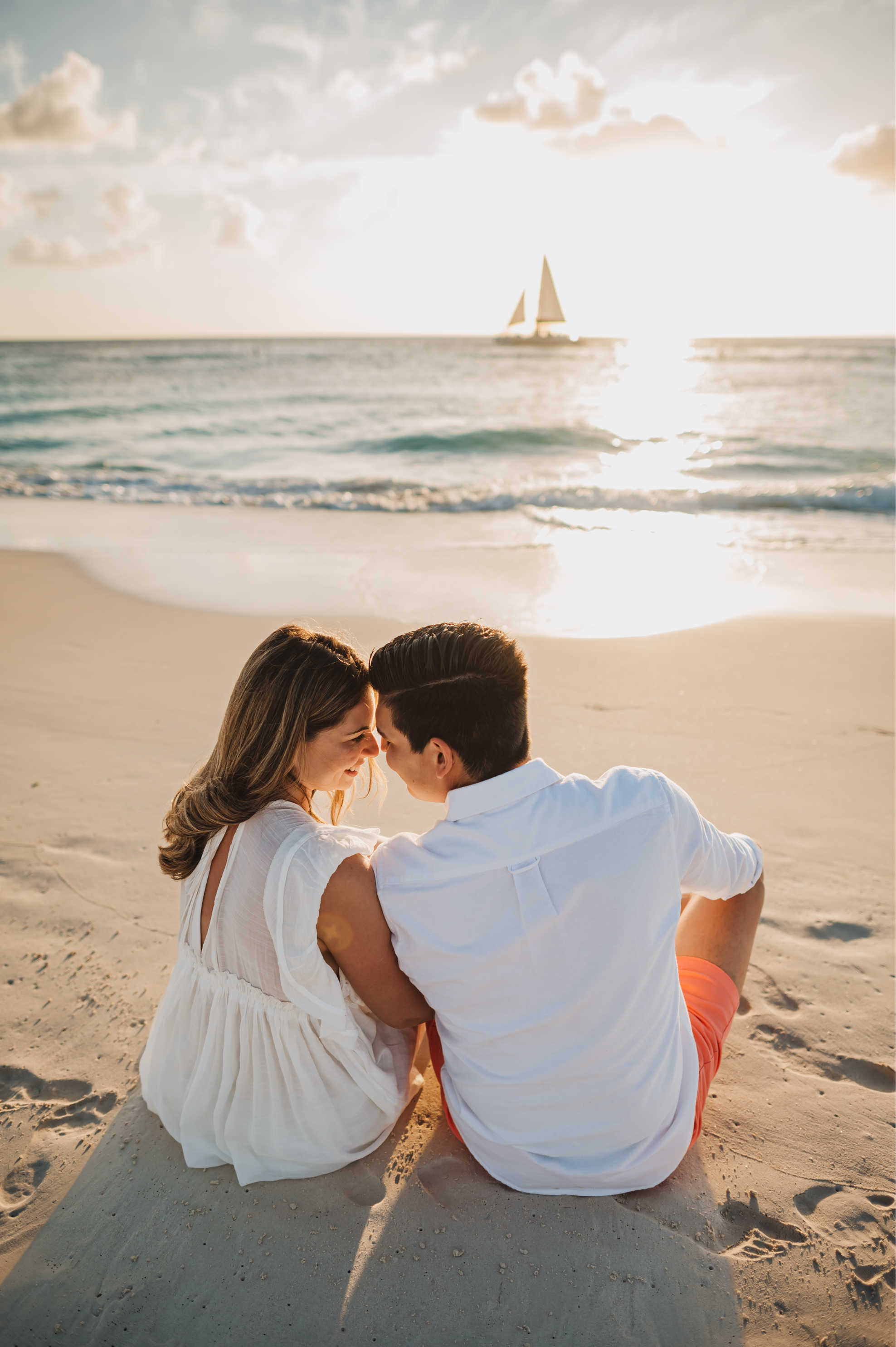 Orland and Josie are not just clients; they’re the cool couple you’d want to grab a drink with. The vibe is so easygoing, with jokes, laughter, and some seriously adorable moments that we couldn’t resist capturing. Their chemistry is like that secret ingredient that makes a photoshoot feel like a breeze. As the sun dips below the horizon, we wrap up the session, but the hangout vibes linger. Those photos aren’t just pixels on a screen; they’re a storyboard of Orland and Josie’s genuine connection against the stunning backdrop of Manchebo Beach. It’s like freezing time on a canvas of love, laughter, and a seriously good beach day. Cheers to Orland and Josie – the stars of our picture-perfect day!