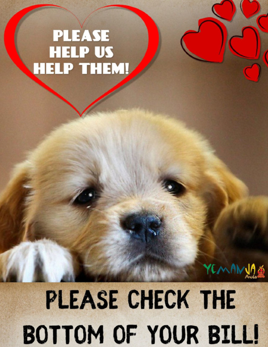 If you’re able, we kindly ask each guest to add a dollar donation to your bill to benefit Aruba’s Animal Foundations.